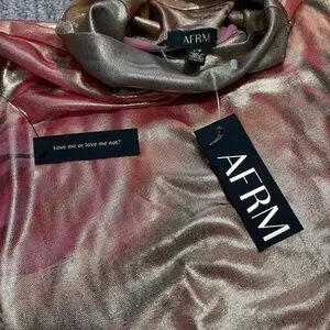 Make a statement in this AFRM Metallic Mesh Top, featuring a sheer, body-contouring fit with gold and rose hues. A perfect layering piece or bold stand-alone top for a night out.