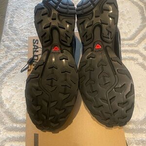 These are blend of style and performance with Salomon's black athletic featuring Goretex technology. Featuring a quick-lace system and a robust outsole, these shoes are designed for optimal grip and support during your outdoor activities. Sleek design and advanced cushioning technology ensure comfort and durability.