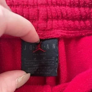 Air Jordan shorts are medium, 5-6 year old. Nike green shorts are large, 6-7 year old but fit more like 5-6, the fit is shorter.