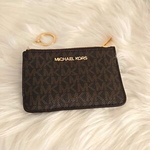Elegant brown wallet by Michael Kors. Features gold zipper and logo.