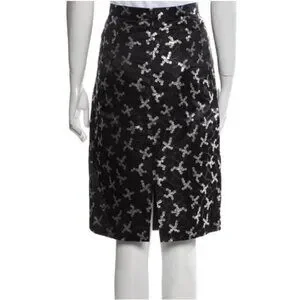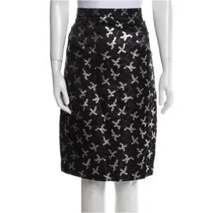 Escada Sequin Print Brocade Pencil Skirt Black Silver Silk Blend
