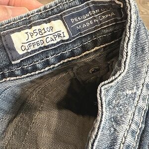 Miss Me 28 JP5810P Cuffed Capri Cropped Blue Denim Jeans Jewel Flap Back Pockets