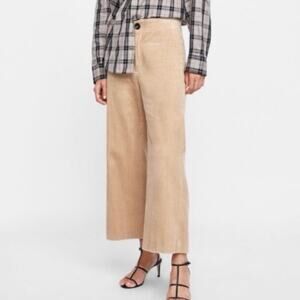 Zara corduroy wide leg crop ankle pant camel tan beige women's M 7290 249 756