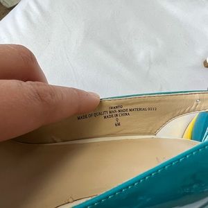Nine West Iwanto Multi-color Blue and Yellow Slingback Platform Pumps Size 6