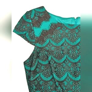 NEW Sangria Turquoise & Black Lace Bodycon Soft Stretchy Midi Dress