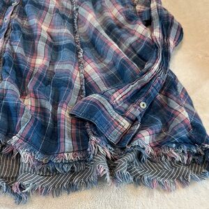 Plaid button down shirt. Frayed edges. Soft fabric. Casual style. Worn a few times , oversized, any questions please feel free to ask