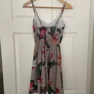 Embrace summer with this chic floral striped dress. Featuring a blend of vibrant colors, it's perfect for any occasion.