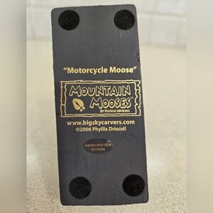 Retired 2006 Big Sky Carvers Phyllis Driscoll Mountain Mooses "Motorcycle Moose". Moose out for an afternoon ride on his motorcycle. Hard to Find!! 3 1/4" H x 3 3/4" L x 1 1/2" W