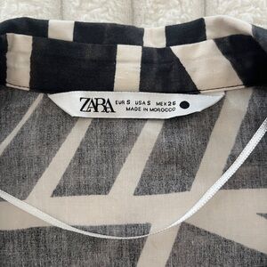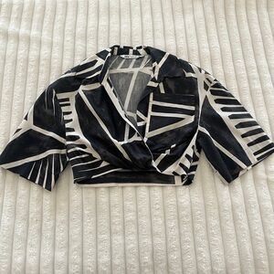 Zara Women’s Black and White Geometric Print Short Sleeve Crop Top Blouse Size S