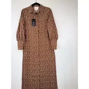NWT Veiled Womens Dress Brown Maxi Floral Ditsy Button Down Shirtdress Boho XS