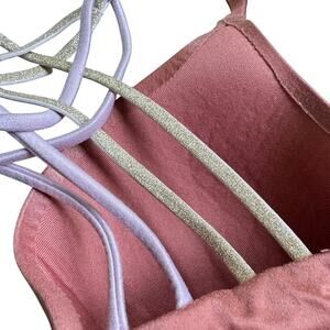 Color: Mauve with lilac and gold crisscrossing straps