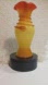 Add a touch of elegance to your home with this stunning orange and yellow art glass vase. Beautiful two color cased glass with a distinctive honey colored glass swirl surrounding the neck. Air bubbles from the glass blowing process are seen throughout the vase. No chips or cracks. 8".