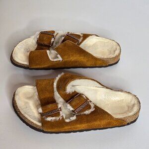 Birkenstock Shearling Suede Arizona Cognac Sandals Sz 37 EU Women 6-6.5 US