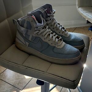 White and Light Blue Air Force High Tops, EUC🎉🤍 Men's Size 12