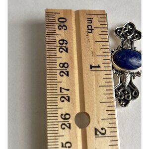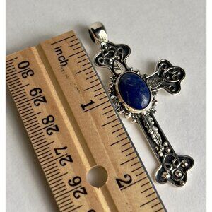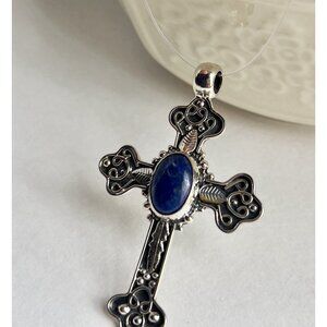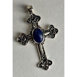 Handcrafted Oval Lapis Lazuli Cut Gemstone Cross 925 Sterling Silver