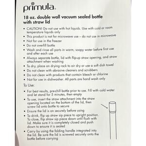 The Primula travel tumbler is a great addition to your kitchen, dining, and bar collection. It's perfect for outdoor activities, work, and travel. The tumbler is made with high-quality materials, and is brand new. Get your hands on this trendy bottle today!