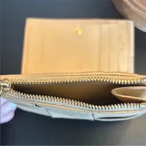 Very good used condition. 2 very small ink marks inside and some minor coin residue otherwise very nice condition. Lambskin leather. Comes with suede dust bag