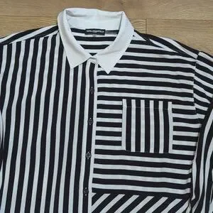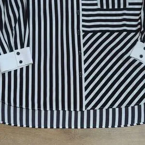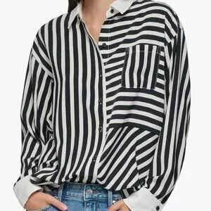 KARL LAGERFELD Women's Soft Long Sleeve Stripe Everyday Fashion Sport Blouse 2XL