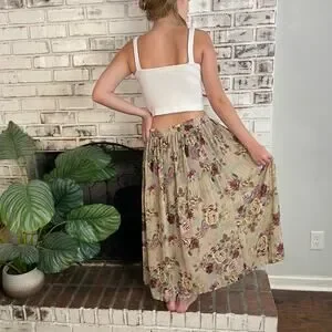 Vintage 90s Sag Harbor Floral Pleated A-line Slightly Sheer Maxi Skirt