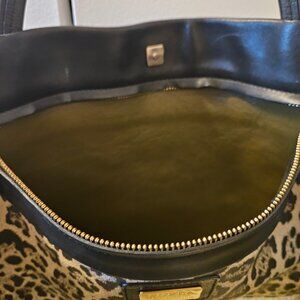 Vintage Furla Black Leather Trapeze Bag with Tiger Print & Gold Lining