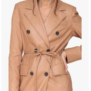 Avec Les Filles Double Breasted Vegan Leather Trench Coat Camel Brown