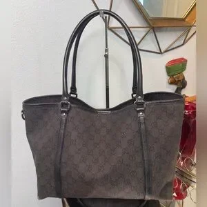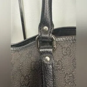 GUCCI Denim black medium GG Joy Tote Bag Snap