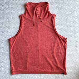 A playful twist on a classic tank, the prAna Cozy Up Barmsee Tank in Fresca Heather, a coral color, is lightweight, relaxed, and perfect for active or laid-back days. Made from prAna’s bestselling Cardiff fabric—a soft blend that includes naturally odor-resistant hemp—it feels pre-broken-in from the very first wear. The sleeveless design features a cowl neck with drawstring, a split center back seam, and a banded hem for a flattering shape.
