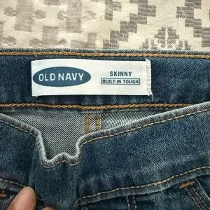 These Old Navy skinny jeans in a classic blue hue offer a sleek and modern fit. Crafted from high-quality denim, they provide both comfort and style for any casual occasion. The subtle fading adds a touch of character to these versatile jeans.