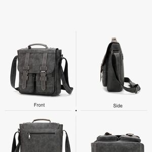This black messenger bag combines a vintage aesthetic with modern functionality, featuring a structured rectangular shape and an adjustable shoulder strap for comfortable carrying. Its sleek design makes it suitable for both professional and casual settings.