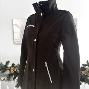 Faux fur inner collar lining to keep your neck warm that can be zipped up to a funnel neck