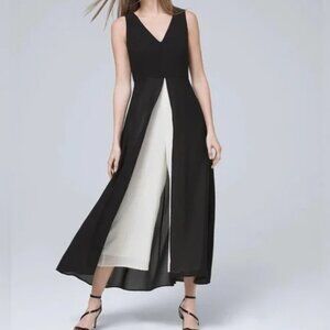 White House Black Market V Neck Jumpsuit Black and White Cocktail Attire Overlay