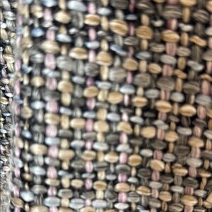 This CHANEL tweed blazer showcases a classic multicolor blend of blue, pink, taupe, and gray on a dark gray background. White rockstud enhancements. Tailored silhouette and structured shoulders. Stunning! 32 inch bust, 25 inch sleeve, 25 inch length. Very good preowned condition.