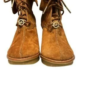 Michael Kors Womens Stiletto Heeled Tan Lace Up Suede Ankle Booties - Size 7M
