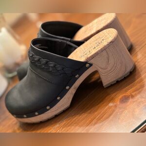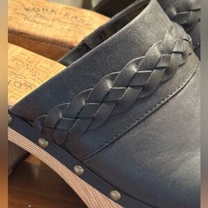 Women’s Kork-EaseTilly Black Leather Platform Braided Clogs Size 9