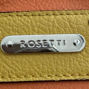 Rossetti leather imitation purse. 8 x 6 inches. Orange & yellow with white piping. 5 pockets. 2 minor marks on it. Noted in photos.