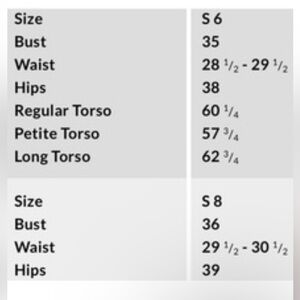 SIZE CHART ATTACHED