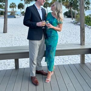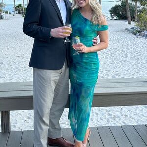 Embrace elegance with the Hello Molly Blue Green One Shoulder Bodycon Dress, perfect for weddings and cocktail events. This sleeveless dress features a striking one-shoulder neckline and a form-fitting silhouette that accentuates your curves. The vibrant blue and green hues create a captivating look, making it a standout choice for any special occasion.