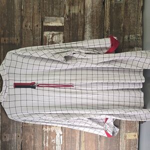Ali Miles White and Red Checkered Oversized Long Sleeve Shirt, Plus Size 2X