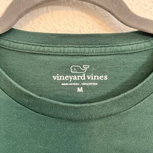 Experience comfort and style with this Vineyard Vines men's long sleeve shirt. Featuring a rich green color, this shirt is perfect for casual outings. The classic design includes a convenient chest pocket and signature branding on the sleeve. It’s the holiday collection.