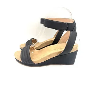 Lucky Brand Womens Kellio Sandal Size Taupe Leather Wedge Heel Ankle Strap 7.5