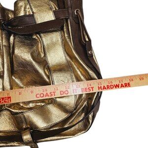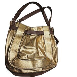 Kooba Gold & Brown Leather Shoulder Bag Boho Tote Bag Maximalism Metallic