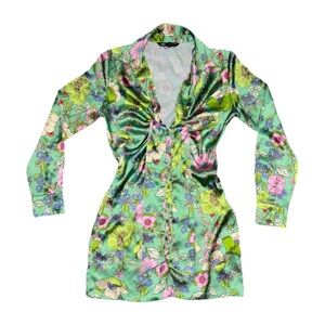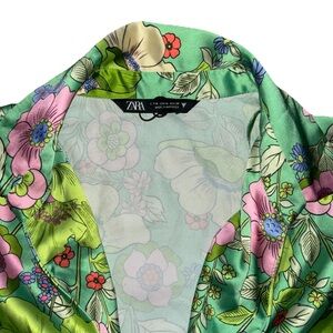 Embrace the warmer seasons with this vibrant Zara Summer Mini Dress in size small. It features a playful floral pattern that's perfect for casual outings, cocktail parties, or when you're out traveling. The dress boasts a flattering V-neckline and long ruffled sleeves that add a touch of elegance to the overall design.