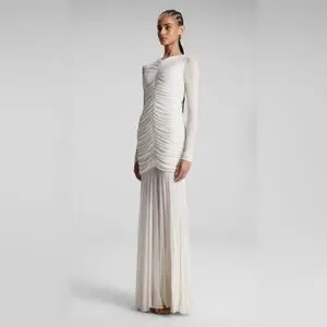 A.L.C. fawn ruched mesh maxi dress in off white color
