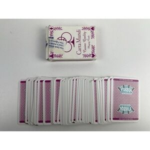The product is a set of high-quality playing cards in the pink color "CARTA MUNDI" design. These cards are manufactured in the United States and are designed for casino-quality gameplay. Ideal for collectors or enthusiasts of card games, these cards offer durability and a luxurious aesthetic. Perfect for adding a touch of elegance to any game night or collection, these playing cards are sure to impress.