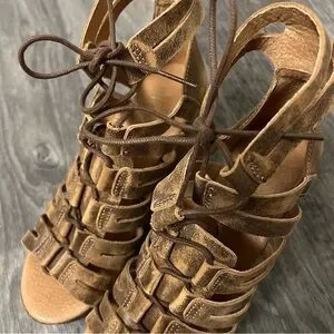 FreeBird by Steven Ibiza lace up wooden platform sandals sz 7US
