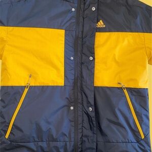 Stay warm and stylish in this vibrant Adidas puffer hoodie jacket/coat, featuring a bold yellow and black color combo. Perfect for layering, this cozy piece offers both comfort and performance, making it ideal for cooler days. its sleek design and snug fit will keep you looking fresh while keeping the chill out. A must-have for any Adidas fan or streetwear enthusiast. It fits a medium/large. Brand new never worn