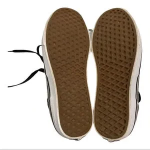 Great used condition, no flaws, just normal wear, size 7. Vans Off The Wall Skate shoes, Herringbone gray canvas lace up , size 7 mens, size 8.5 womens.
