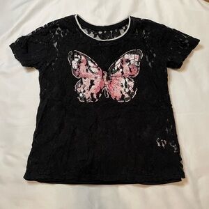 🐶🐶🐶Girls Justice size 10 black lace pink butterfly shirt🐶🐶🐶