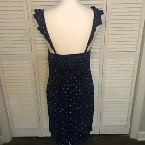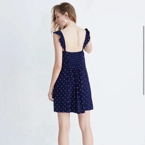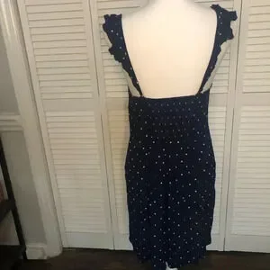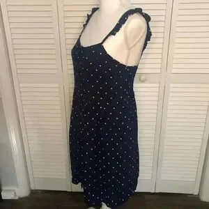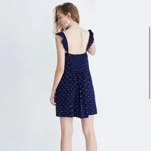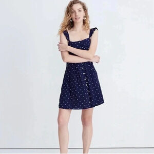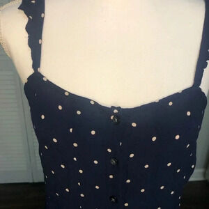 Madewell Boho Ruffle-strap Navy Polka Dot Button Down Sleeveless Sundres…