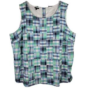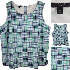 Talbots Madras Patchwork Tank Womens Plus 3X Green Plaid Side Zip Lined Cotton